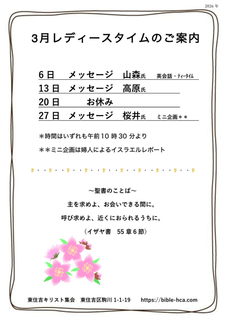 そんなとき家庭の要である私たちにとって、確かな指針となるべきものが必要ではないでしょうか。よりよい家庭を築くための答えを、聖書の中から見出していただければ幸いです。お気軽にお越しくださいますよう、ご案内申し上げます。