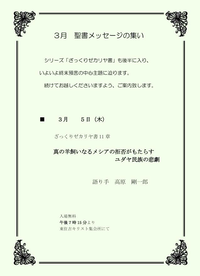 シリーズ「ざっくりゼカリヤ書」も後半に入り、いよいよ終末預言の中心主題に迫ります。